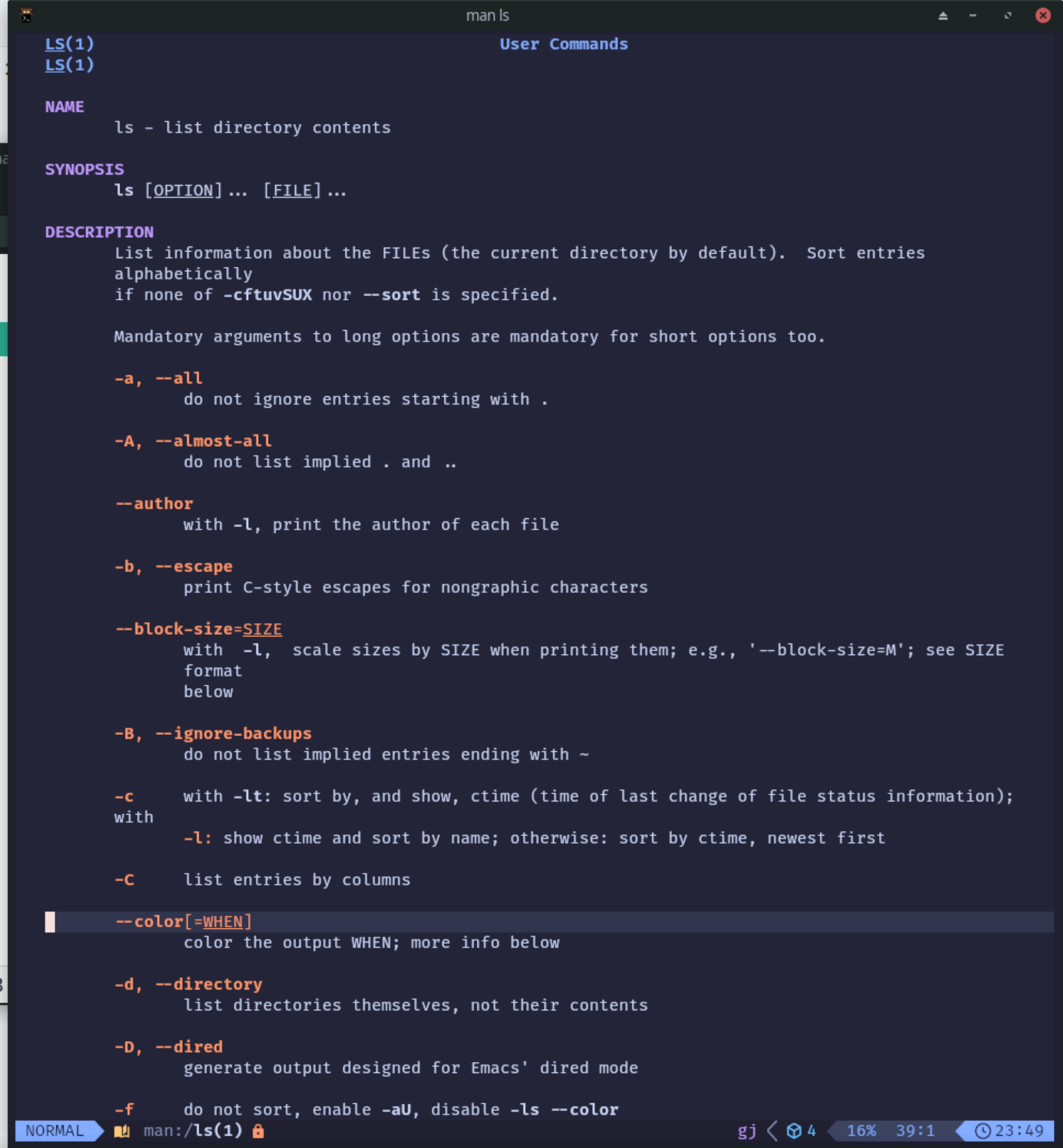 We can have much nicer manpages by setting a variable for the manpager. This goes in my ~/.zshrc