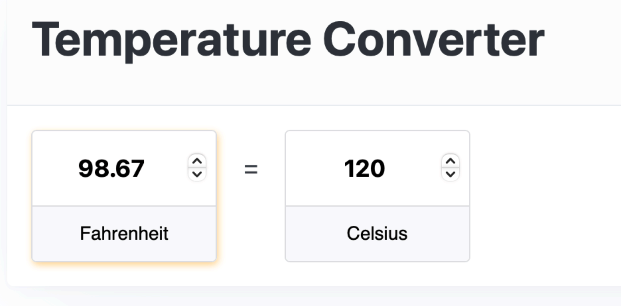 This project is a completely standalone toy. If this was going to expand the App component would be a generic Conversion component that would take as props the formulas to go from one unit to another and the names of the unit.
